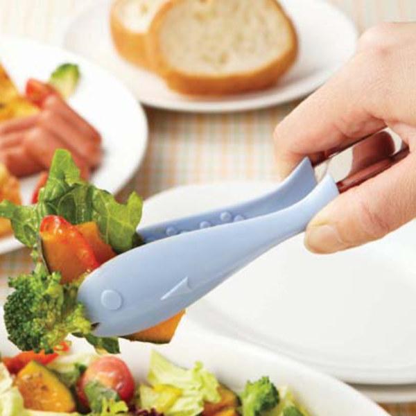 サラダやおかずの取り分けに使いやすい、ナイロン製のかわいいおさかな型トングです。