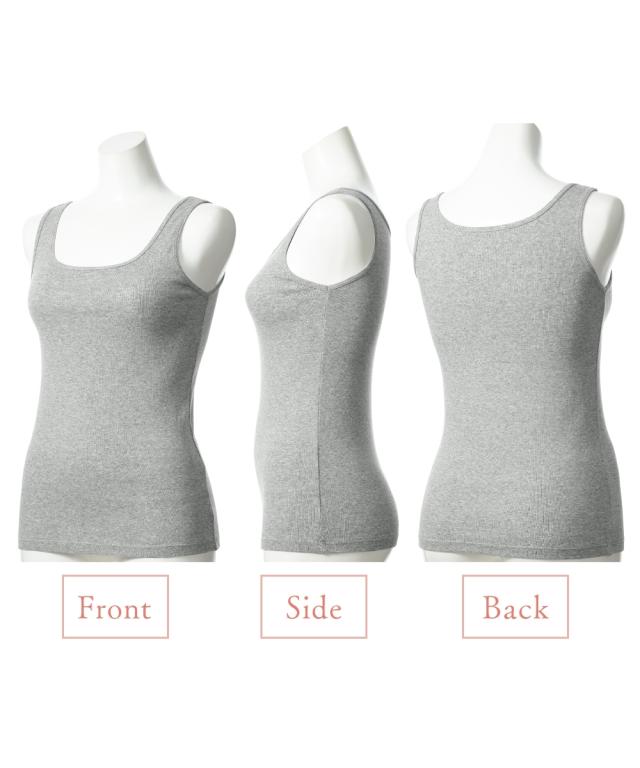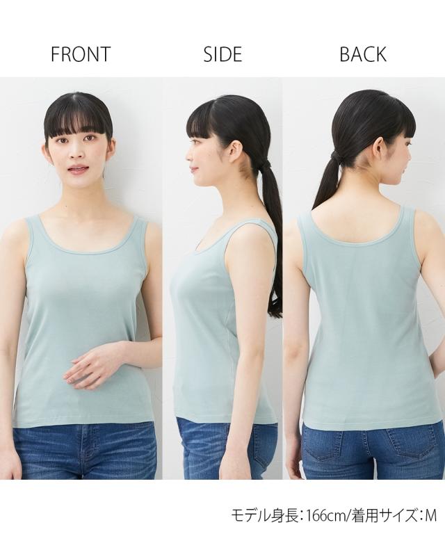 ベーシックなデザインのタンクトップ。デイリー使いにぴったりです。