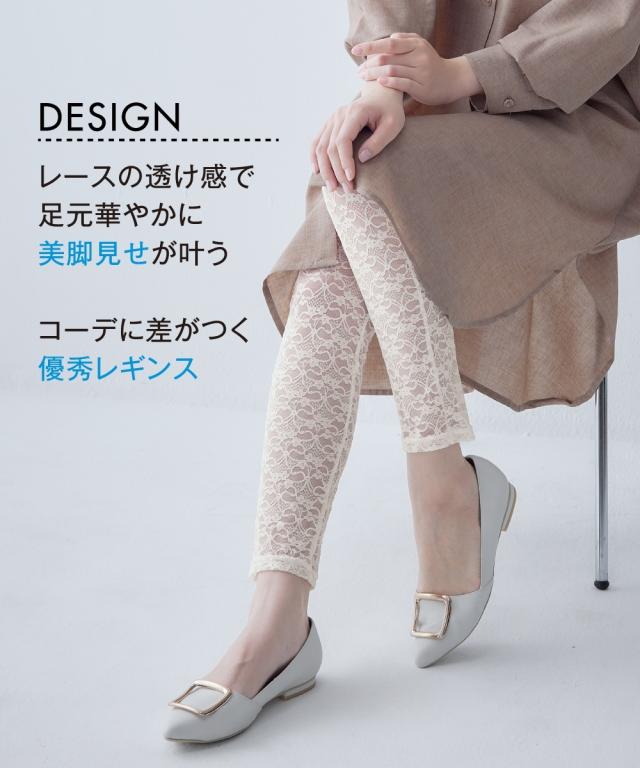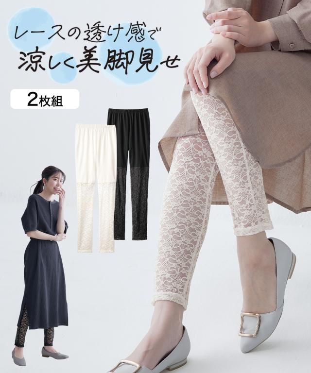 レギンス レディース 綿混 レース 切替 2枚組 M〜L/L〜LL/LL〜3L ニッセン nissen