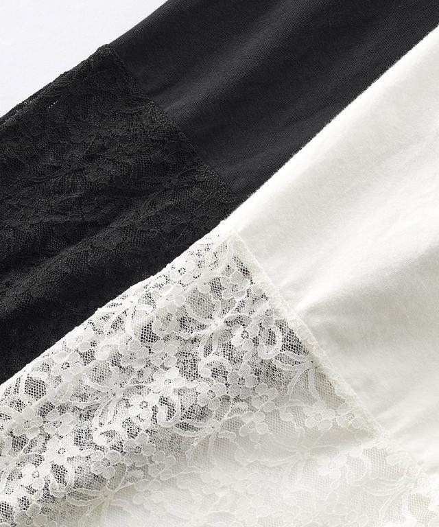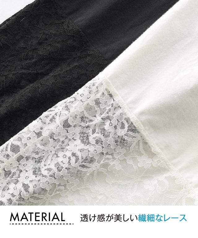 品質=身生地:綿95%・ポリウレタン5%(ストレッチ天竺) レース部:ナイロン90%・ポリウレタン10% 原産国:中国製