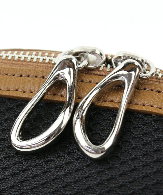 【特徴】間口:ダブルファスナー開閉式タイプ、内側:オープンポケット×1、ファスナーポケット×1