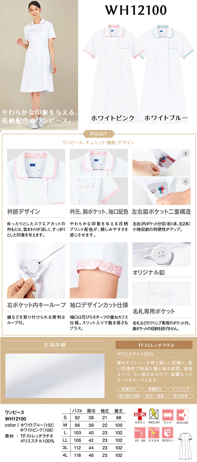 ワンピース WH12100 ホワイトピンク ホワイセル(WHISEL) 自重堂