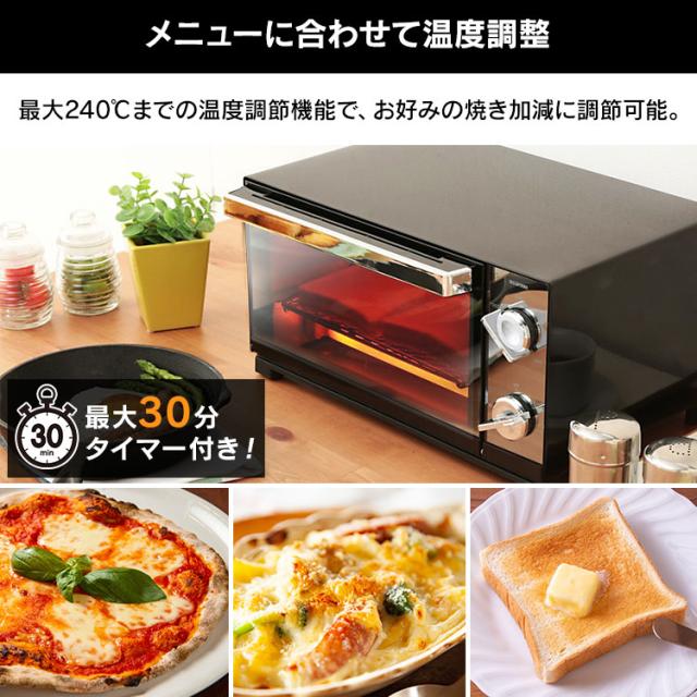 - お手頃価格でパン4枚焼ける事 ピザが1枚焼ける事の条件にピッタリ パンは綺麗な焼き色で満足です ピザはまだ焼いてません スタイリッシュでお掃除も楽そうです
