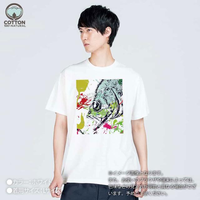 釣り Tシャツ 半袖 メバル ペンキペイント 5.6oz (オンス) 綿100% メンズ レディース 洗濯 大きいサイズ ホワイト ブラック グレー アイボリー 白 黒 灰色 肌色 春 夏 秋 冬 オシャレ 釣り 魚 ルアー