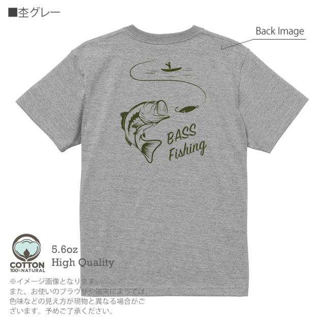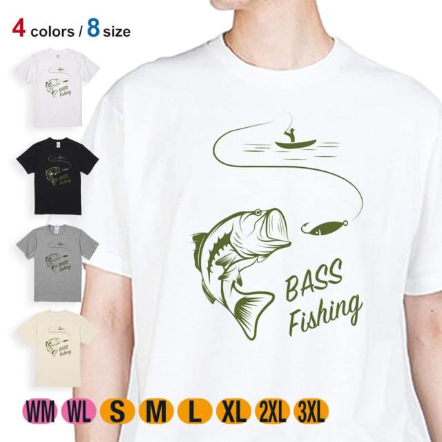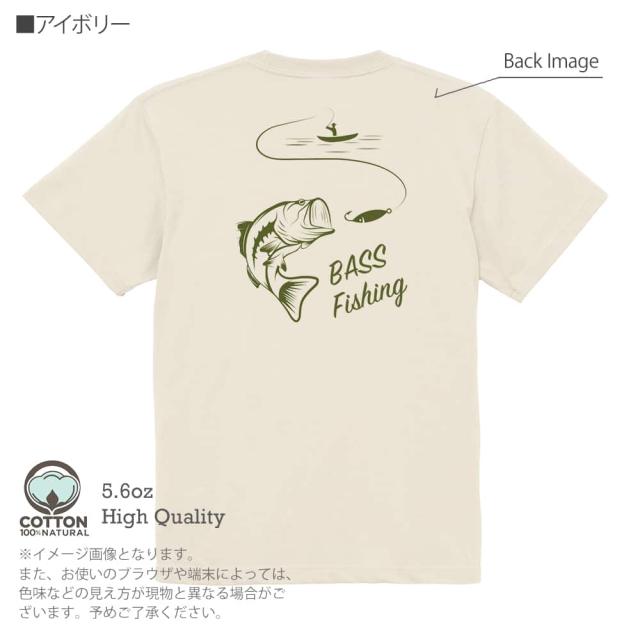釣り Tシャツ 半袖 バス釣り 5.6oz (オンス) 綿100% メンズ レディース 洗濯 大きいサイズ ホワイト ブラック グレー アイボリー 白 黒 灰色 肌色 春 夏 秋 冬 オシャレ 釣り 魚 ルアー