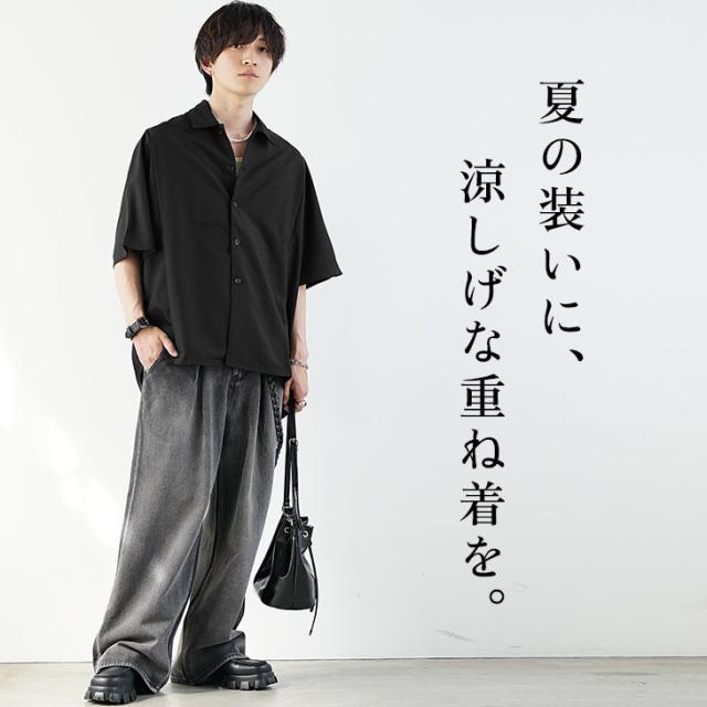 「夏が整う軽やかな羽織り」落ち感ビッグドルマン5分袖シャツ