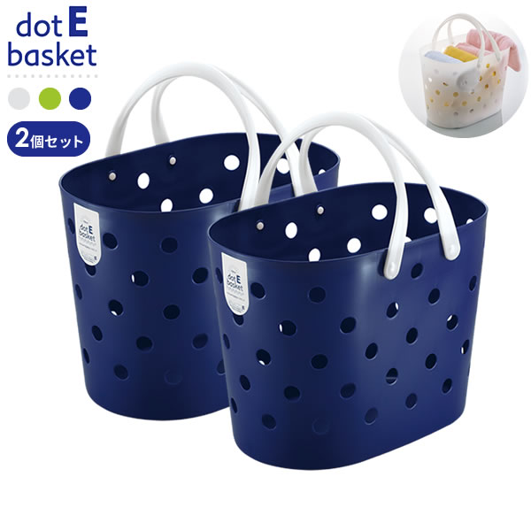 収納かご ニュードットEバスケット ネイビー ×2個セット F-2459 | カゴ 洗濯カゴ ランドリーバスケット おしゃれ