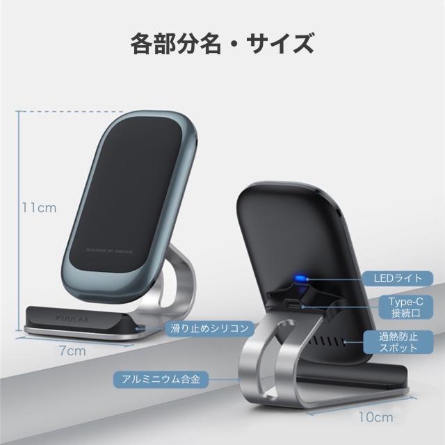 ワイヤレス充電器 置くだけ Qi充電器 スタンド 急速充電 ブラック iPhone15 充電ケーブル 充電器 おすすめ 縦置き 横置き Android Xperia Galaxy Samsung HUAWEI iPhone 15 14 13 12 11 SE3 X XR XS スマホ アンドロイド