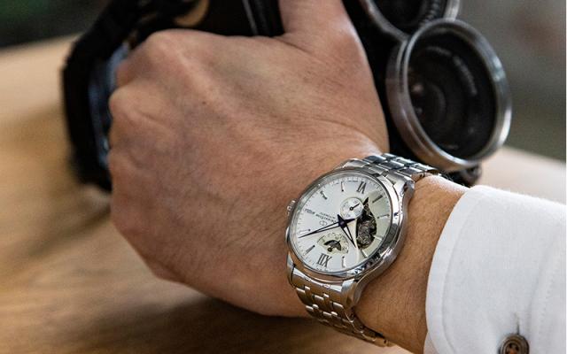 『レイヤードスケルトン』は、スーツスタイルからインスピレーションを得て、テキスタイルの表情をダイヤルに演出したユニークなデザインが特長で、ビジネスシーンに映えるスタイリッシュなモデルです。