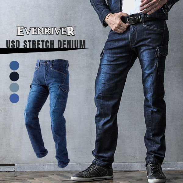 イーブンリバー EVENRIVER デニム カーゴパンツ 作業着 ワークウェア 作業服 ストレッチ 綿 コットン ズボン ワークパンツ おしゃれ かっこいい