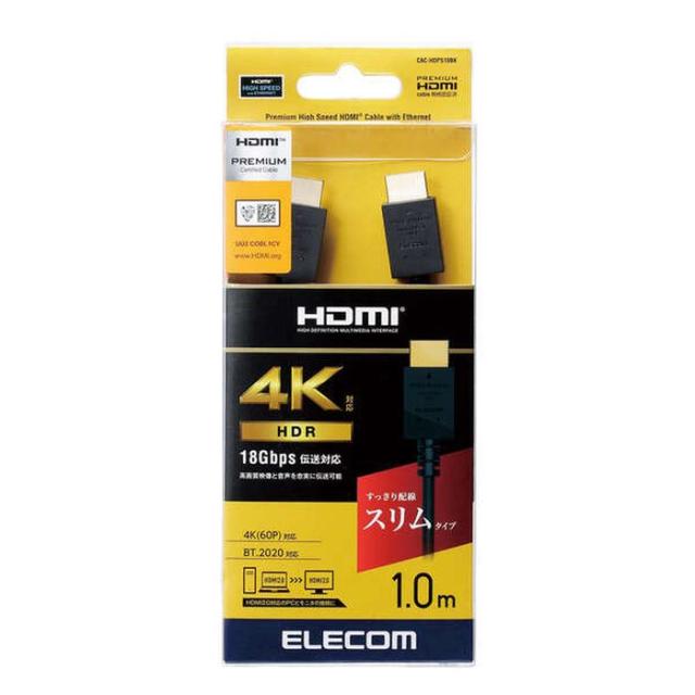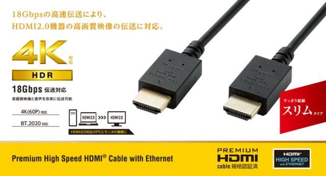 即納 代引不可 Premium HDMIケーブル スリム 1m 4K/Ultra HD対応 18Gbps 高速伝送 映像 音声 ブラック エレコム CAC-HDPS10BK