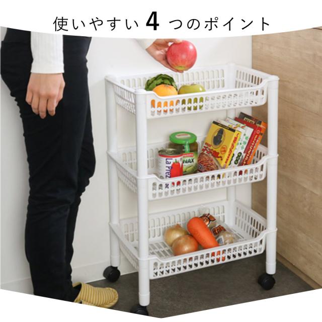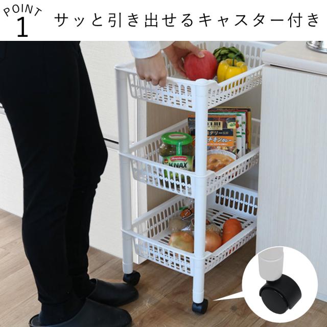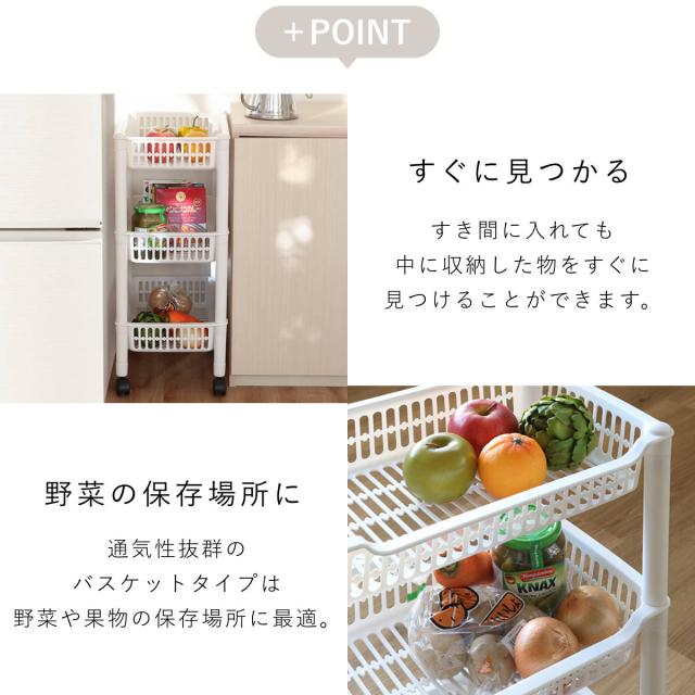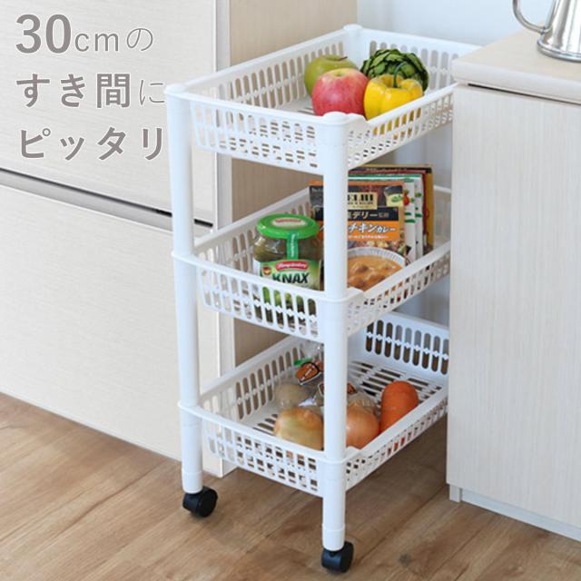 キッチンワゴン バスケット 3段 キャスター付き ストレージカート120 幅30cm ( 隙間収納 キッチン収納 スリムワゴン キッチンラック like-it ライクイット キッチンストッカー キッチン収納 キッチン すきま収納)