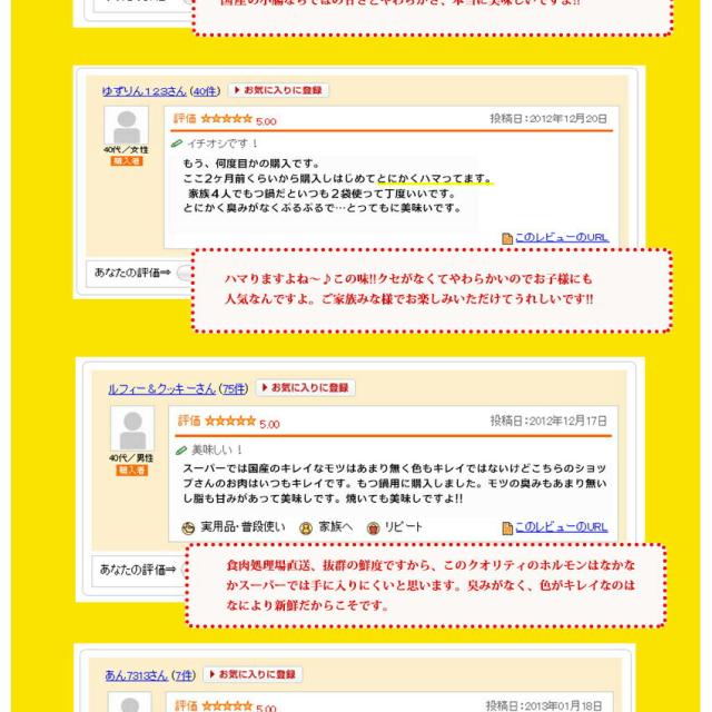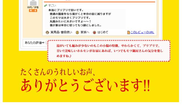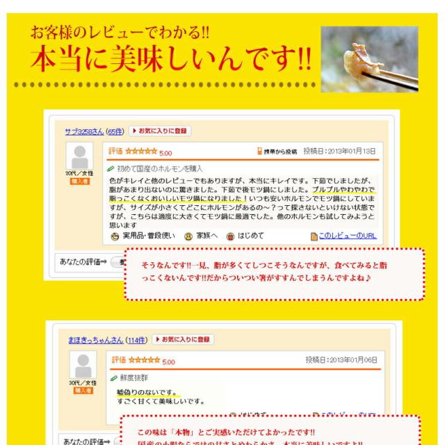 | 商品説明 | 小腸といえばコラーゲンが豊富な食材。おすすめの食べ方は定番のもつ鍋、キムチ鍋。焼きそばなども〇。ピーマンやキャベツなどのビタミンCの豊富な野菜と一緒にどうぞ。ビタミンCはコラーゲンの生成や保持を補助してくれるので、同時摂取をおすすめします。 【国産・もつ鍋・キムチ鍋・ホルモン・お祝い・御祝・内祝・ギフト・お中元・お歳暮・母の日・父の日・敬老の日】 |