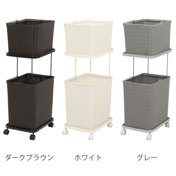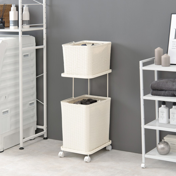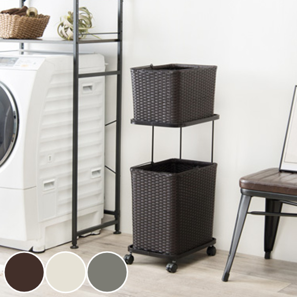 ランドリーラック 2段 ランドリーワゴン ランドリーバスケット バスケット付 縦型 ラタン調 ( ラタン スリム キャスター キャスター付 洗濯 バスケット 脱衣かご ラック 洗濯物入れ 大容量 洗濯かご 四角 収納 防水 分別 )