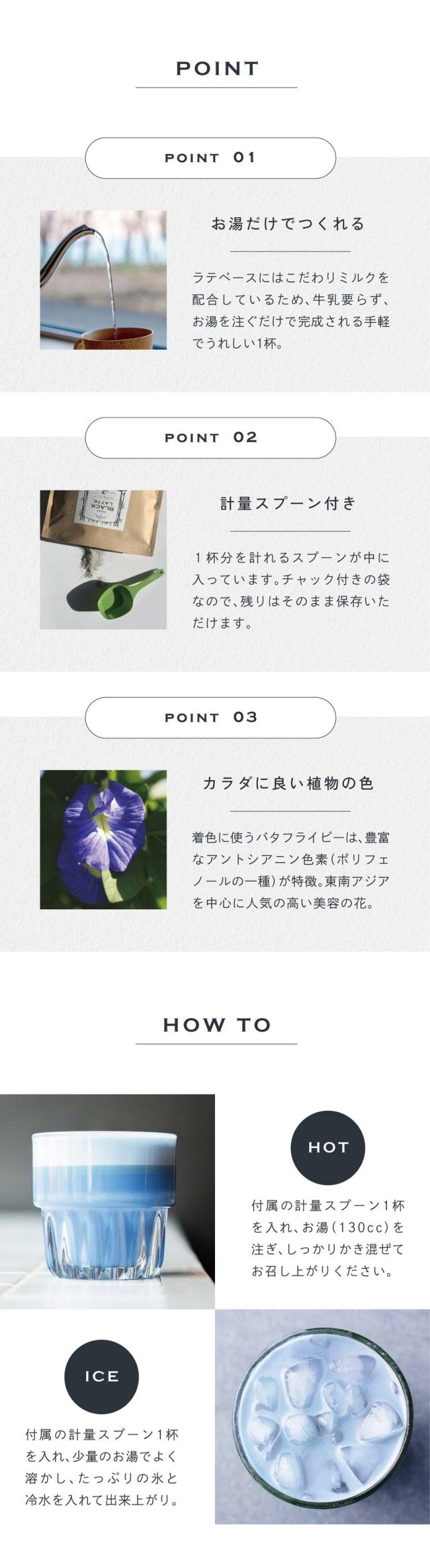 植物の青が美しい「幸せを呼ぶ青いラテ」。