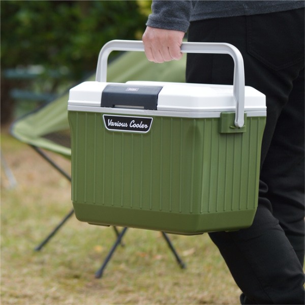 ちょっとしたお出かけに便利な、最大容量9Lサイズのクーラーボックスです。収納目安として、350ml缶の場合16本、500mlペットボトルの場合8本入ります。