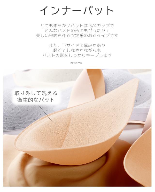 とても柔らかいパッとは3/4カップでどんなバストの形にもぴったり!