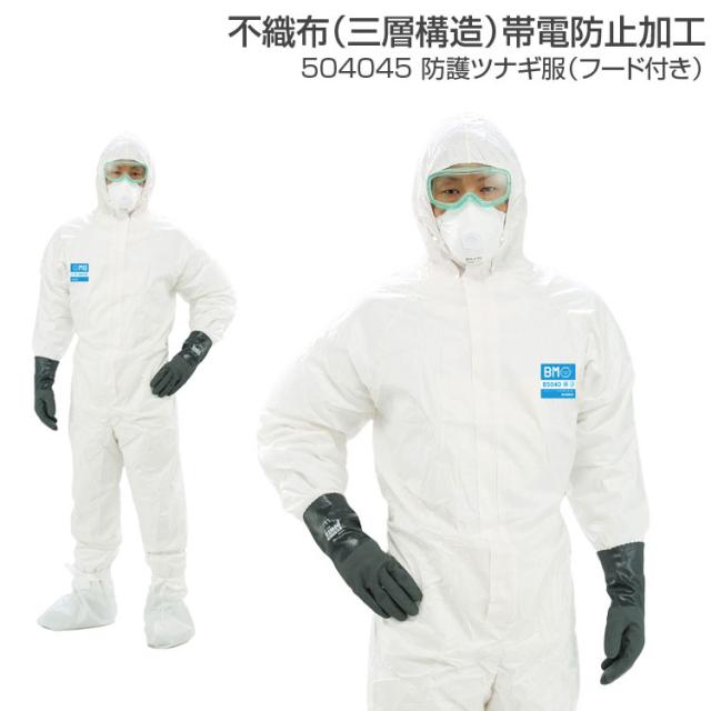 防護服 安全用品 防護ツナギ服(フード付き)5 帯電防止加工 不織布 粉じん作業 アスベスト作業 塗装吹付作業 家畜・飼料取扱い作業 50404
