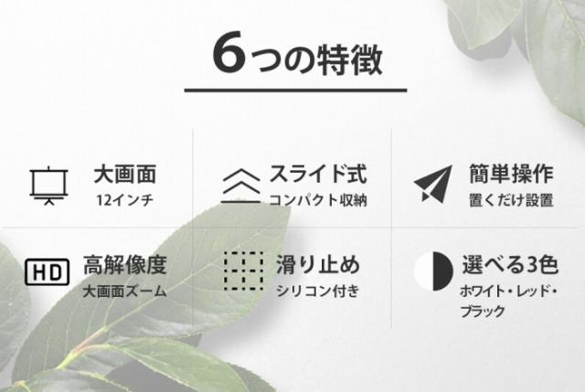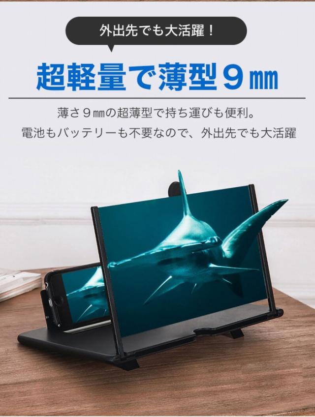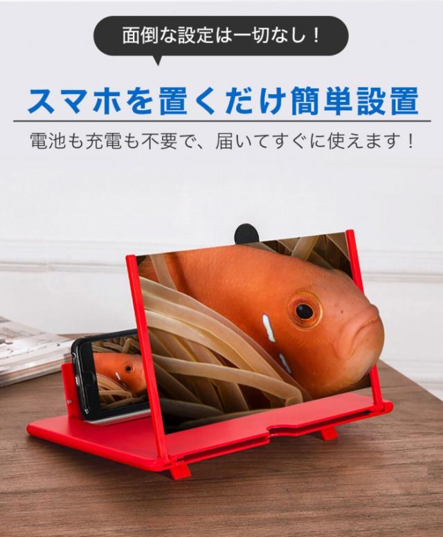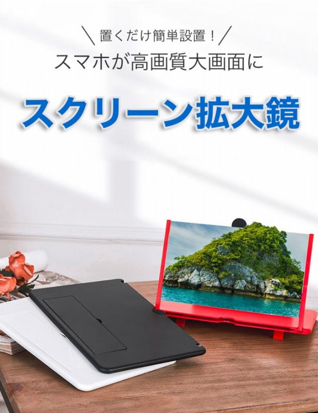 | 商品の説明 | 置くだけでスマホを大画面で楽しめるズームスクリーン 映画、ドラマ、スポーツ実況やライブ配信など、様々な動画コンテンツを大画面でお楽しみ頂けます スマホを置くだけ 面倒な設定は一切なし 電池も充電も不要で、届いてすぐに使えます 映画・アニメ・ドラマ・ライブ配信など 様々な動画コンテンツを臨場感たっぷりの大画面で 拡大スクリーンの使用で、長時間小さなスクリーンに集中することによって引き起こされる不快感や目の疲労感を軽減します 薄さ9mmoの超薄型で持ち運びも便利 電池もバッテリーも不要なので、外出先でも大活躍 シリコン素材の滑り止めが付いているので、スマホも滑りにくくしっかり固定 高さ調整ブラケット付き 底面ベースの角度を上げて視角調整が可能です 手を離して使えるので作業や家事中にも レシピを見ながら料理やお菓子作りにも便利 オンライン授業やリモートワークなど、様々なシーンでお使いいただけます。 スマホと離れて視聴できるので、高齢者の方や、お子様の視力低下が気になる方にもお勧め。 |