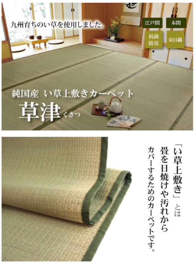 代引不可 い草 上敷きカーペット ござ 約176×261cm 江戸間3畳 畳の日焼けや汚れ防止に 空気浄化 調湿 消臭 抗菌防臭 両面 コンパクト収納 双目織 草津 純国産 日本製 IKEHIKO 1100633