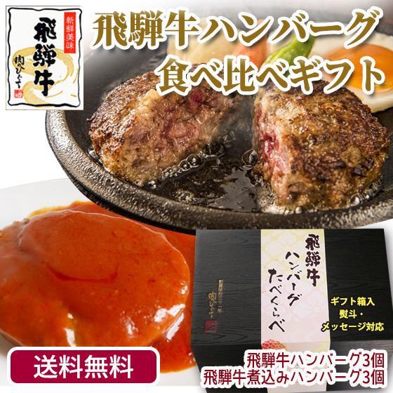御歳暮 2025 飛騨牛ハンバーグ食べ比べセット 飛騨牛ハンバーグ3個・飛騨牛煮込みハンバーグ3個 ハンバーグ 牛肉 ギフト プレゼント 肉 送料無料 ギフト箱入 牛肉 和牛 進物 御礼 御祝 誕生日 記念日 内祝 内祝いお返し のし可 飛騨牛 食べ物