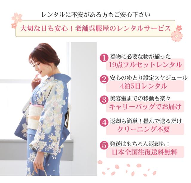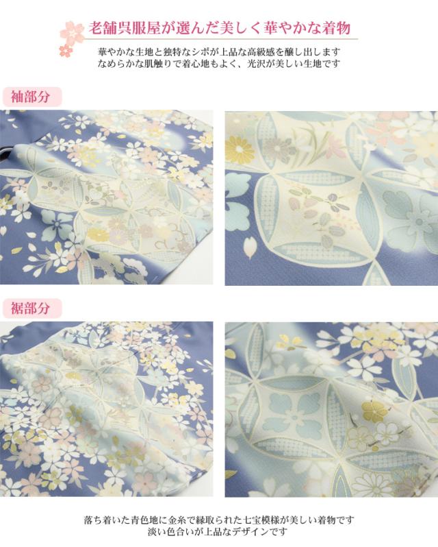 レンタル 訪問着 レンタル 19点フルコーディネートレンタルセット「青地に七宝と桜」結婚式 入学式 七五三 ママ レトロ モダン 30代 40代 50代