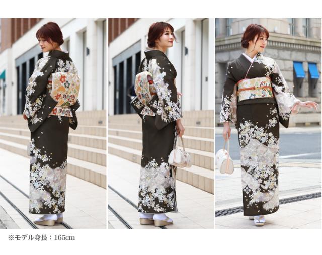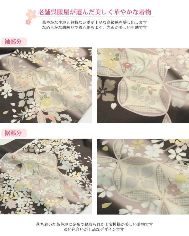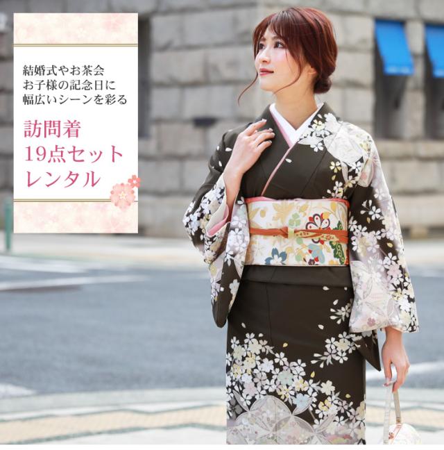 【レンタル】 訪問着 レンタル 19点フルコーディネートレンタルセット「茶色地に七宝と桜」結婚式 入学式 七五三 ママ レトロ モダン 30代 40代 50代