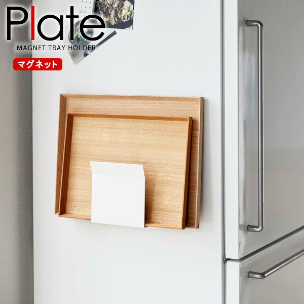 山崎実業 プレート マグネットトレーホルダー ホワイト 5026 | トレイ収納 お盆掛け 鉄板置き 丸盆 マグネット 磁石