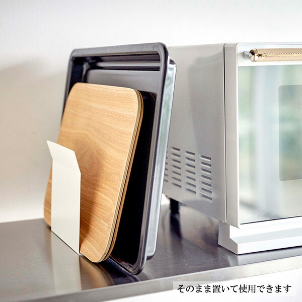 そのまま置いてもキッチンボードなどにそのまま置いて、オーブンの鉄板を立てかけ収納しても。