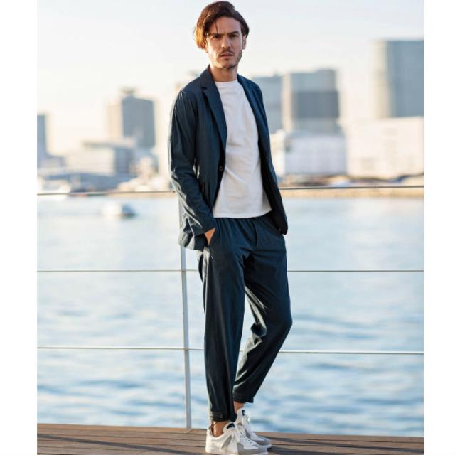 旅行先で、気軽に移動できてリラックスできる服装が魅力のトラベルジャケット。