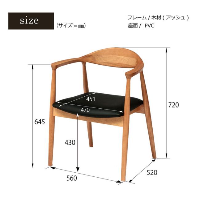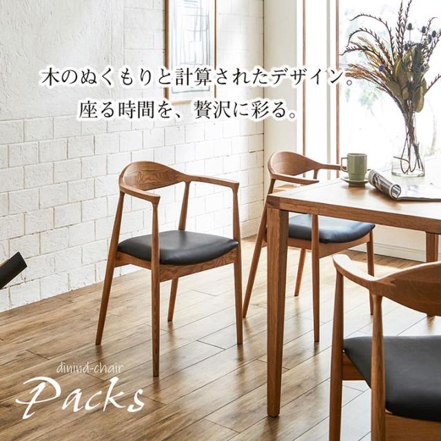 ダイニングチェア 肘掛け 1脚 北欧 木 「パックス」 ウォールナット色 オーク色 ブラウン ナチュラル 木製 無垢