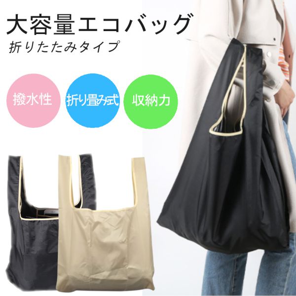エコバッグ レジバック マイバッグ ショルダー 大きい 大きめ 黒 無地 折り畳み コンパクト 送料無料 ポンタ ポイント 交換 消費 超 還元 祭 セール 買い物 買物 袋 バッグ バック エコ 商品 入れる レジ袋 代わり 代用 地球 環境 プラスティックごみ 削減 SDGs 大容量 沢山入る 撥水性 濡れない 折り畳み 収納 小型 軽量