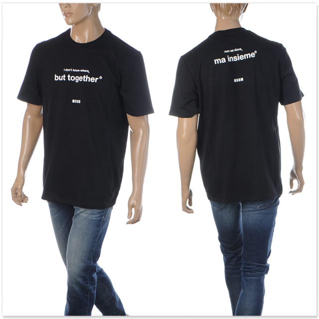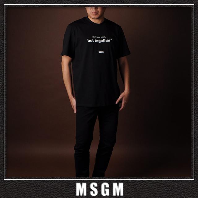 エムエスジーエム MSGM Tシャツ メンズ 半袖 クルーネック ロゴ プリント コットン 3040MM182 ブラック ブランド カジュアル 定番 おしゃれ 人気