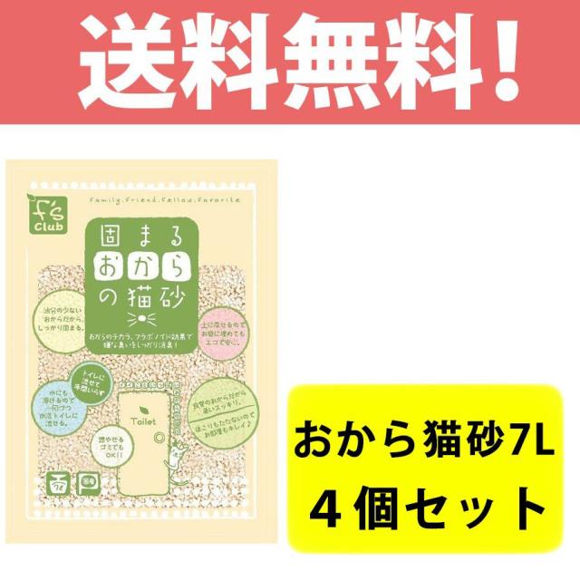猫砂 ネコ砂 ねこすな ペットライブラリー Fs Club 固まるおからの猫砂 強力消臭 消臭 脱臭 流せる 燃やせる おから 7L 4個セット