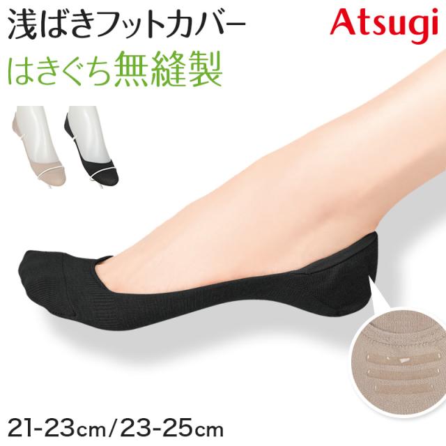アツギ フットカバー 浅ばき 滑り止め 脱げにくい カバーソックス ずれにくい 21-23cm・23-25cm 滑り止め付き 綿混 無縫製 黒 ベージュ ATSUGI 無地 atsugi 浅い 靴下 浅め レッグウェア