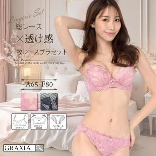 【グラシア】 ブラセット ブラショーツ ランジェリー 下着 ブラ セット ブラ&ショーツ カップ クロッチ パッド 繊細 大人 総レース 透け感 レース ダスティピンク ネイビー