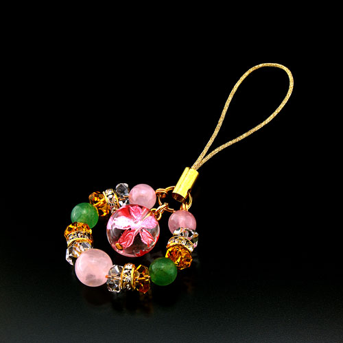 手彫り・桜花ストラップ ストラップ 厄除け 厄除 巾着袋付き 携帯 かばん 開運 魔除け 厄払い ローズクォーツ ローズクォーツ スマートフォン スマホ お守り 厄年 グッズ 幸運 贈り物 お守り プレゼント 男性 女性 メンズ レディース