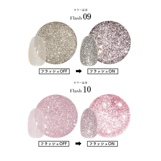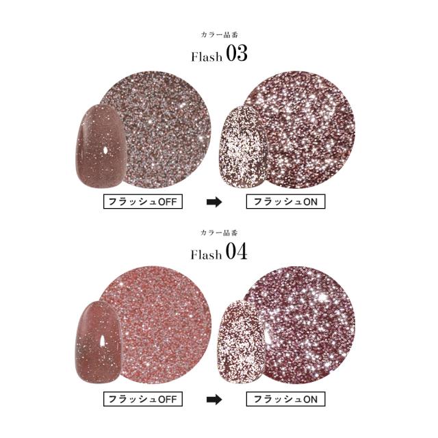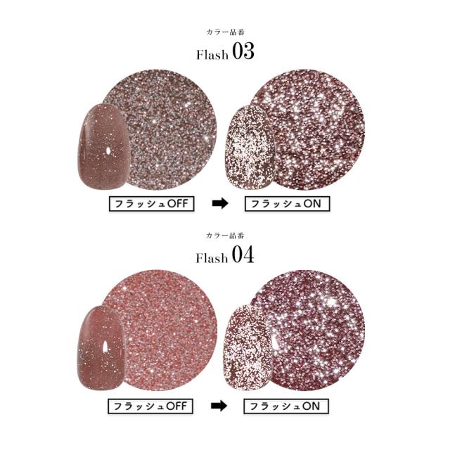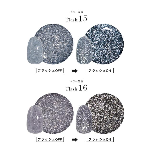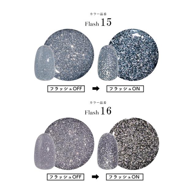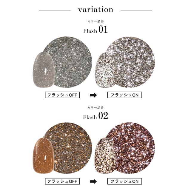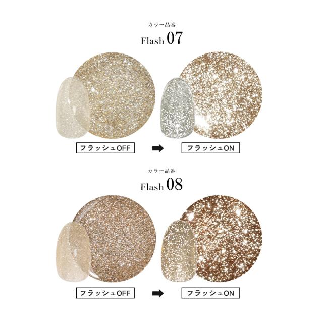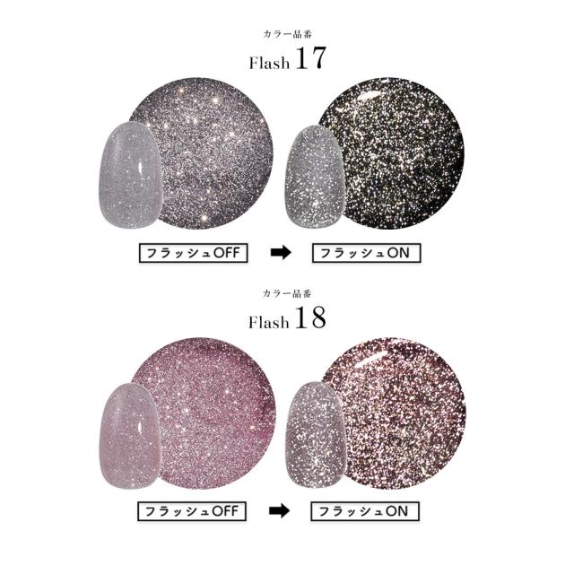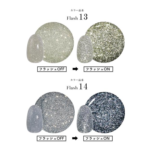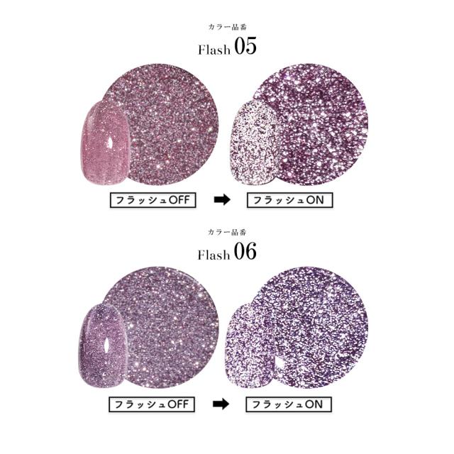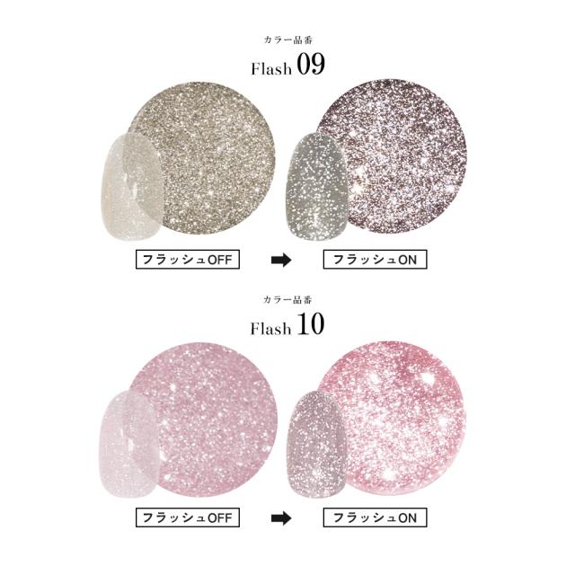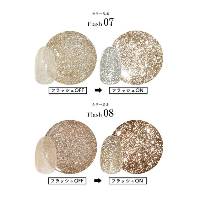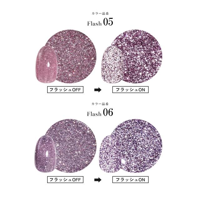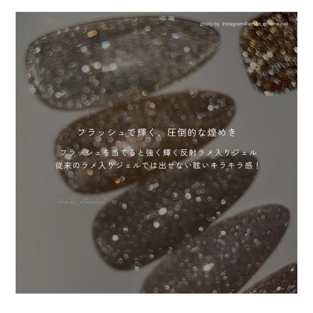 フラッシュを当てると強く輝く反射ラメ入りジェル