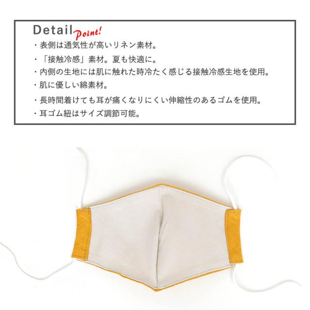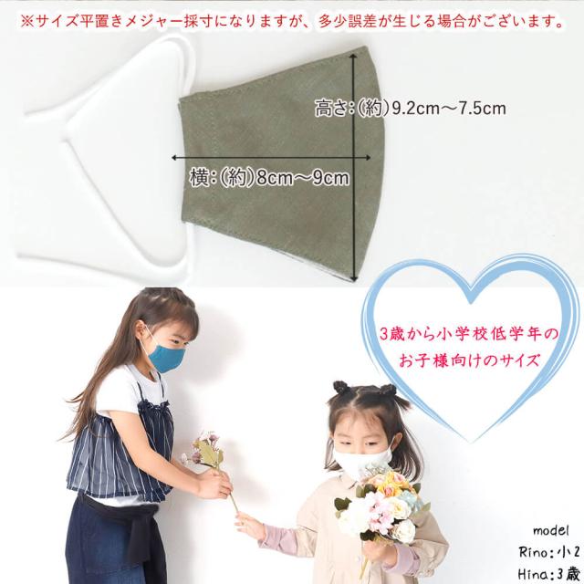 清涼感と接触冷感の立体リネン子供洗えるマスクです。