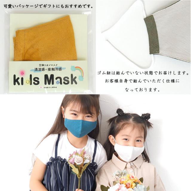 子供マスク 立体 リネン 接触冷感 清涼感 ギフト 記念日 日本製 洗える ひんやりマスク 送料無料 メール便2ポイント