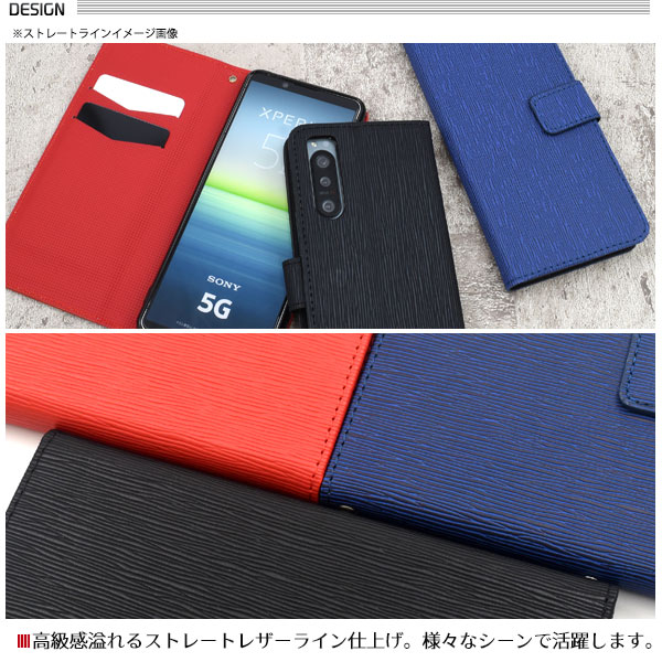 スマートフォンケース Xperia5 II SO-52A SOG02 A002SO 手帳型 ストレートレザーデザイン スマホケース シンプル スマホケース携帯ケース 装着簡単 横開き カジュアル スマホカバー スタンダード スタイリッシュ スマホケース auスマホ ストラップホール付き 赤 黒 青