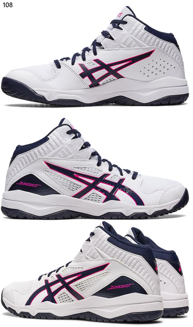 普通幅 アシックス ジュニア キッズ ダンクショット DUNKSHOT MB 9 バスケットボールシューズ バッシュ ミッドカット ホワイト 白 ブラック 黒 ブルー 青 送料無料 asics 1064A006