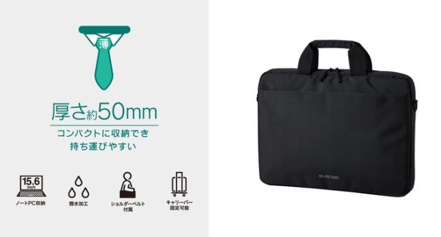 即納 代引不可 ビジネスキャリングバッグ 薄型タイプ ノートPC 15.6インチ対応 撥水加工 2WAY ショルダー 手提げ キャリーベルト ブラック エレコム BM-BSTHBK