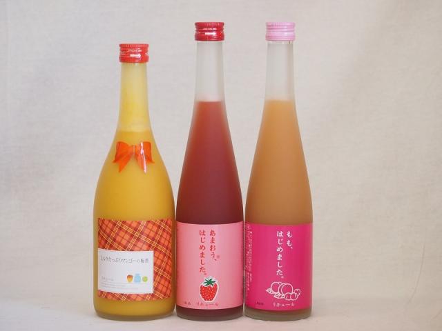 果物梅酒3本セット(あまおう梅酒 ミルクたっぷりマンゴーの梅酒 もも梅酒) 500ml×2本 720ml×1本