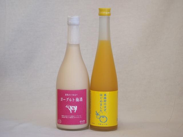 果物梅酒2本セット(ヨーグルト梅酒(福岡) 馬路村のゆず梅酒) 720ml×1本 500ml×1本