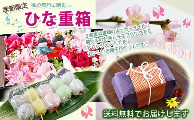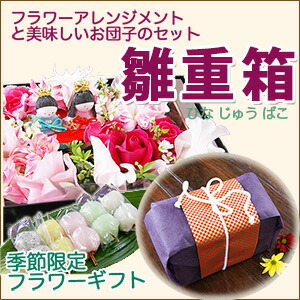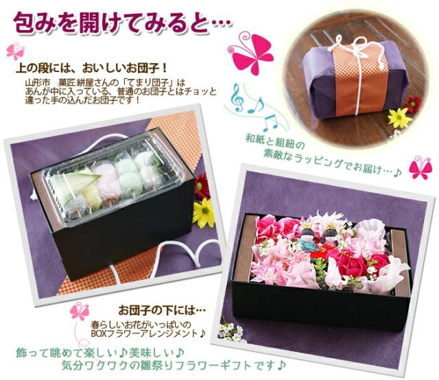 送料無料≪雛重箱≫ひな祭り 団子とセットのアレンジメント【メッセージカード無料】【トラッピング無料】【PM3時までの受付で即日発送】 愛妻の日 ポイント消化 100円 300円 500円