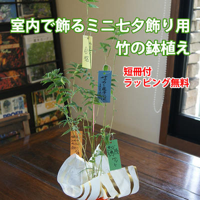 七夕 笹 鉢植え 送料無料 【 七夕飾り ミニバンブー ( 短冊付き ) 】 バンブー 青竹 枯れる 処理 ポイント消化 100円 300円 500円