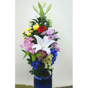 ユリの花をプラスした華やかな仏花です