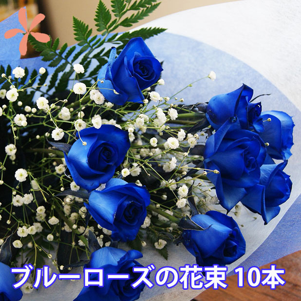 青いバラ ブルーローズ 【 10本とカスミ草 】 誕生日 プレゼント 青バラ 花束 青い薔薇 青薔薇 花 結婚記念日 送別会 花ギフト 青 薔薇 バラ 苗 サントリー 生花 レインボーローズ ポイント消化