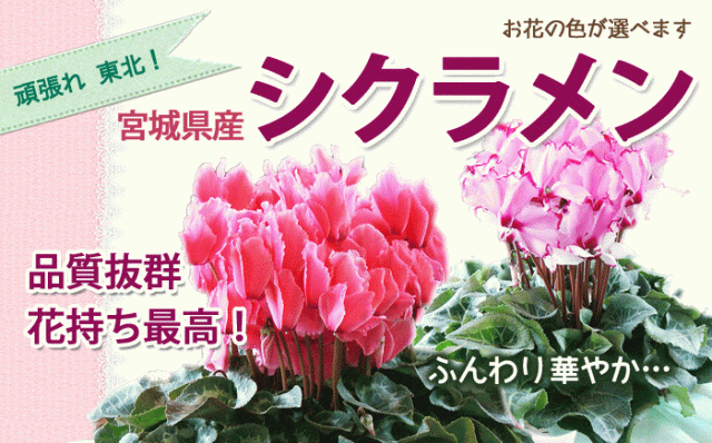 ![]() 宮城県のシクラメンは夜の適度な低温でより鮮やかな花の色を出します。 | ||||